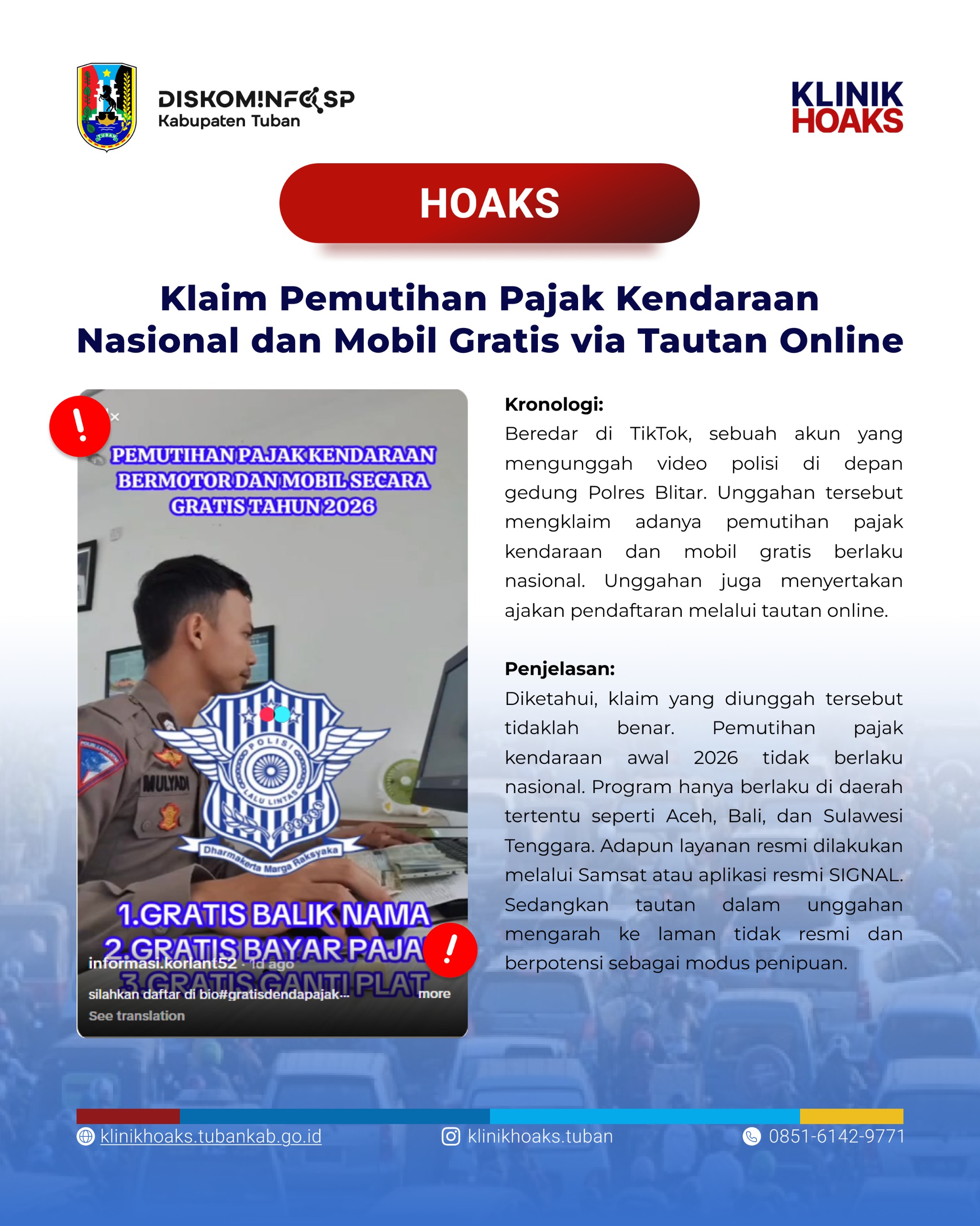 Hoaks [Hoaks] Klaim Pemutihan Pajak Kendaraan Nasional dan Mobil Gratis via Tautan Online 2026-01-21 11:36:29