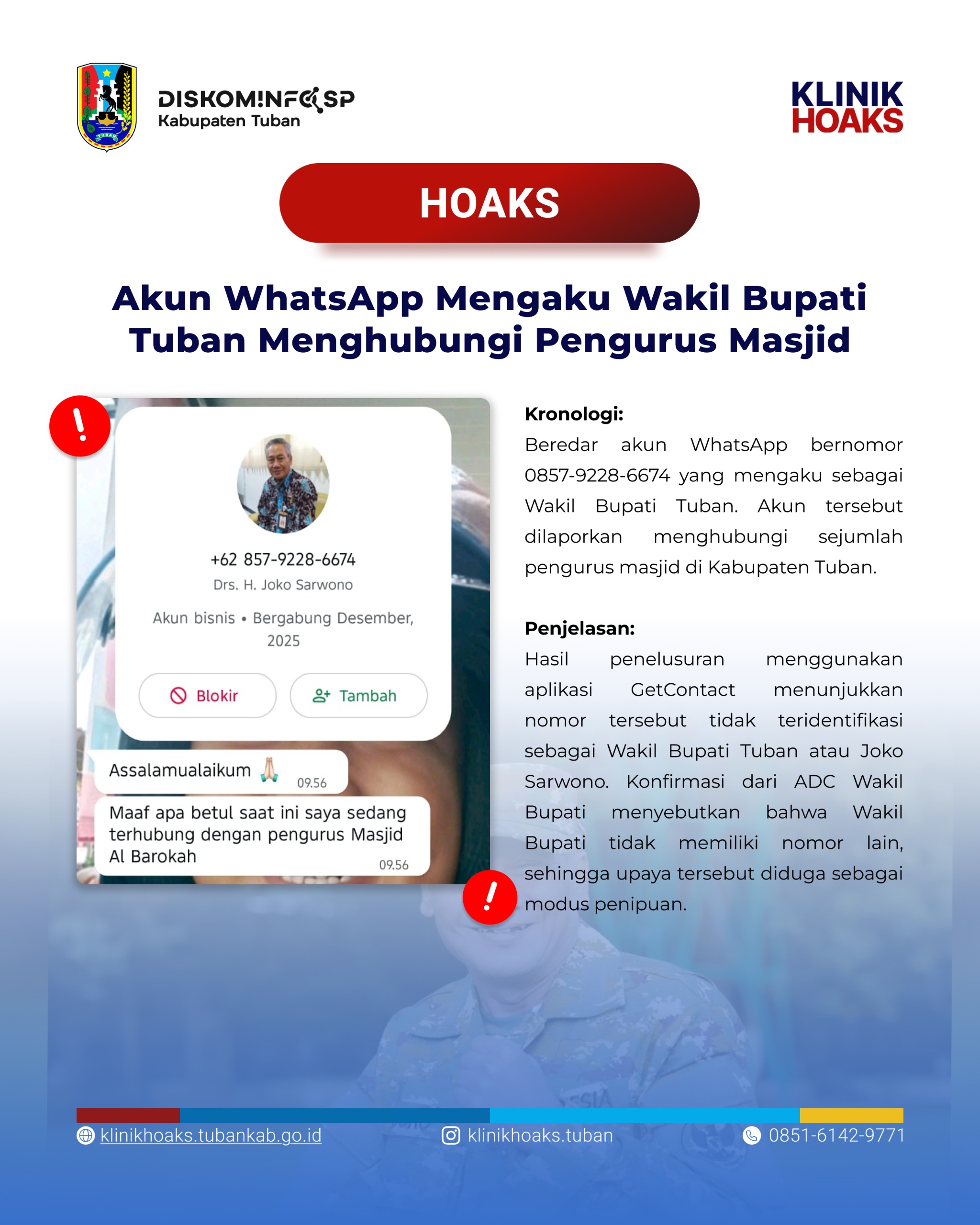 Hoaks [Hoaks] Akun WhatsApp Mengaku Wakil Bupati Tuban Menghubungi Pengurus Masjid 2026-01-23 15:33:19
